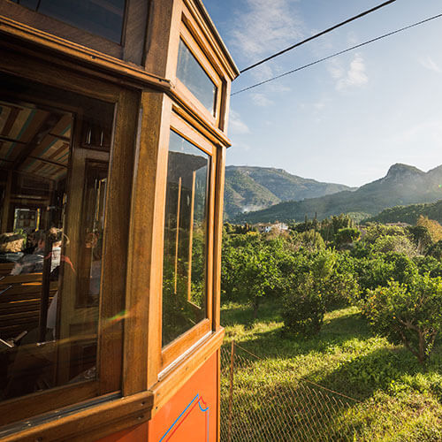 The Sóller railway is characterized by the special and attractive route it takes, overcoming the natural barrier of the Sierra de Alfàbia, 2.8 km wide and 496 meters high.